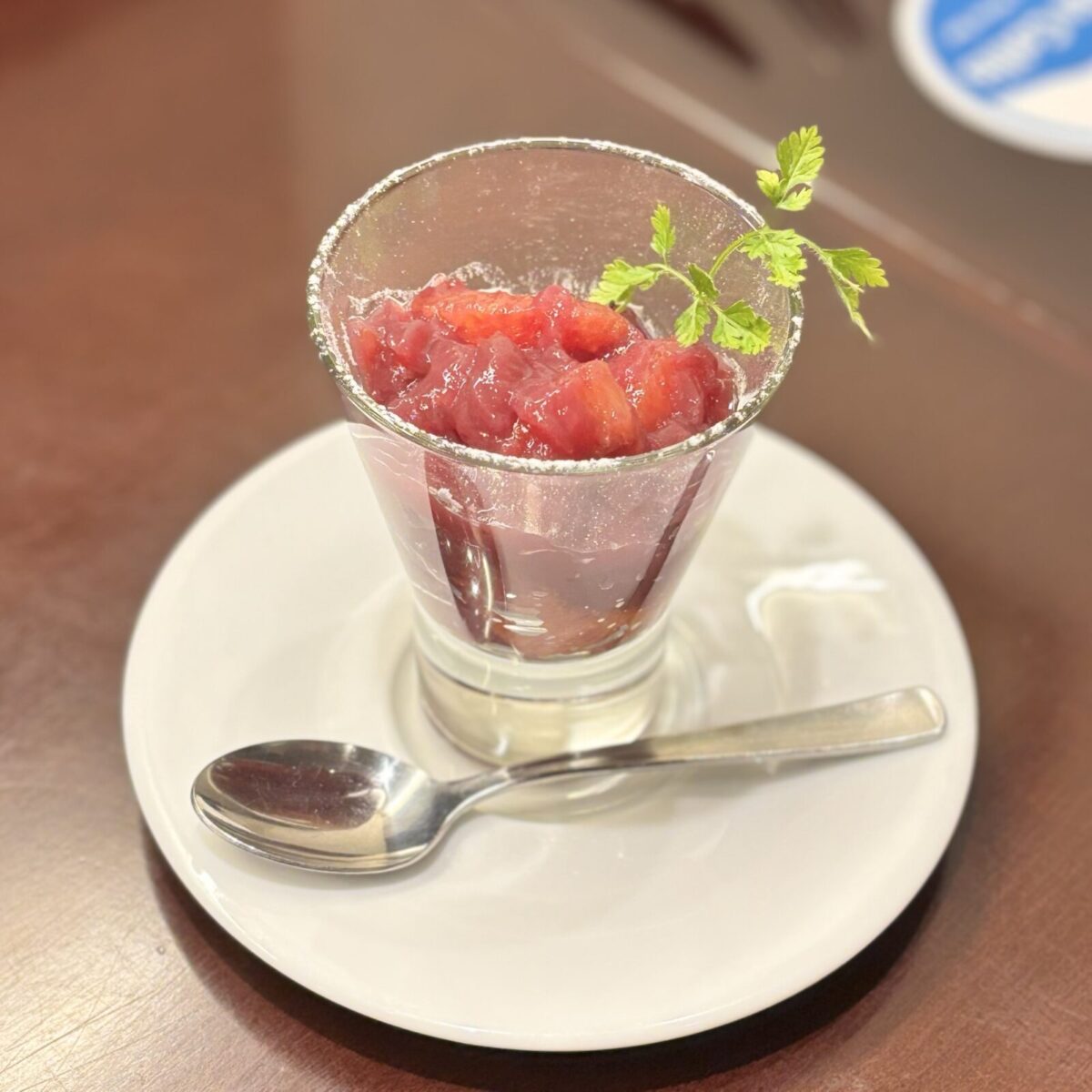 ゼリーはブラッドオレンジの生搾り果汁と赤ワインなのでサングリアのような味わいです。